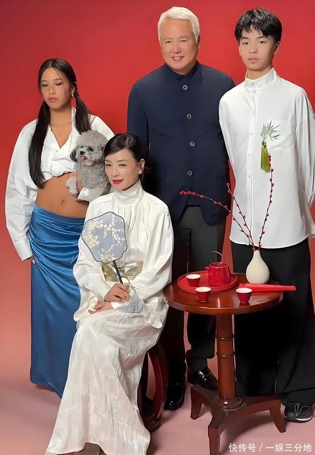 笑起来时,脸上浅浅的酒窝若隐若现,还是那个让人倍感亲切和温暖的女神模样。张庭的出现,为这组全家福增添了一份成熟与优雅的韵味,也让人不禁感叹她对自身形象管理的出色。